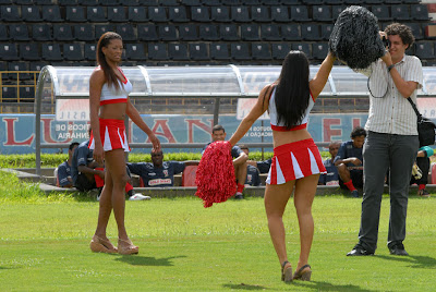 O assessor de imprensa do Botafogo, Rafael Martinez, teve a difícil tarefa de fotografar as cheeleaders de torcida do Bota, chato hein, não esquecendo do detalhe discreto de sua braguilha aberta. Foto: Weber Sian