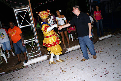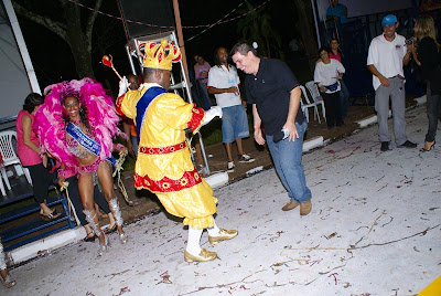 No carnaval, Giuliano dançando com Reio Momo. "Qual é o Reio Momo?" Foto : Mateus Zaccaro