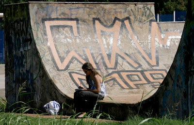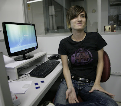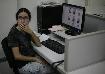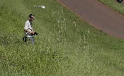 Gabriela, da Gazeta, atende o pedido do fotógrafo e , disposta, da uma volta inteira no Curupira atráz de um personagem ideal... Que não encontrou. Pelo menos daí pra frente. Foto Fabio Melo