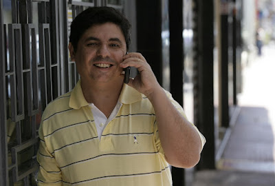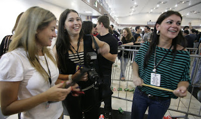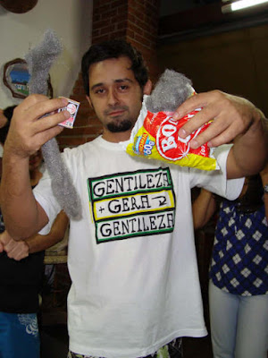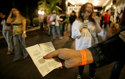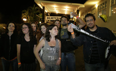 Adriano Quadrado mostra a pulseirinha do Show e seus ingressos inúteis ( não valem nem uma cerveja quente). E ,como sempre, Simei aparece. Foto: Ronny Santos