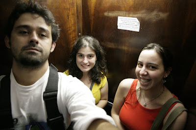 De cá pra lá! Ronny Santos, Isabela Rosemback e Maria Fernanda, durante um breve passeio no 'Centenário' elevador do Jornal A Cidade. A foto foi como prova de sua segurança. hehe. Foto: Ronny Santos