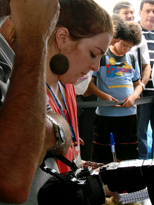 Repórter do A Cidade, Simei, é a primeira da fila na entrega da Rodovia Abraão Assed.